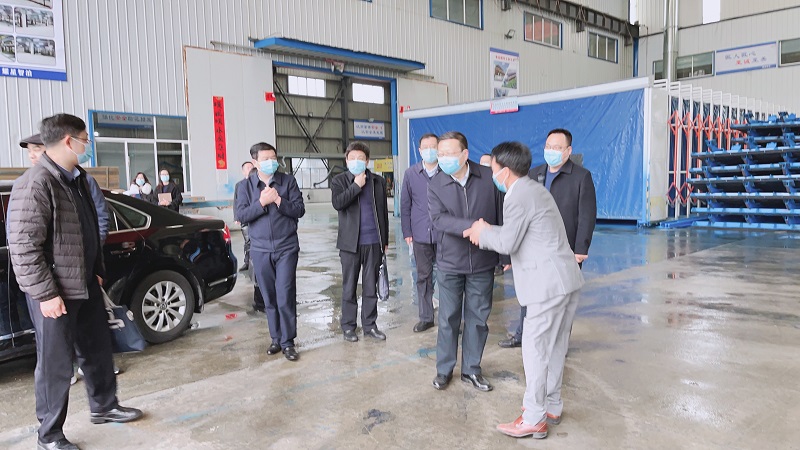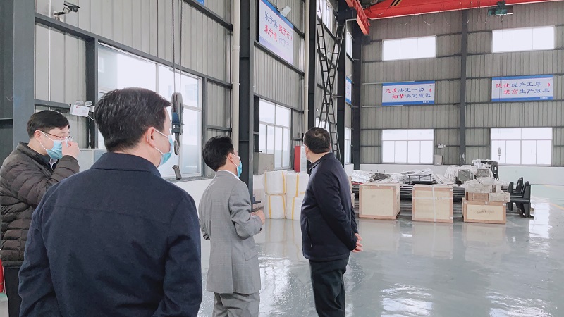 耀星机械董事长向领导介绍介绍项目概况,随后,大家一同参观车间的生产工艺以及半成品